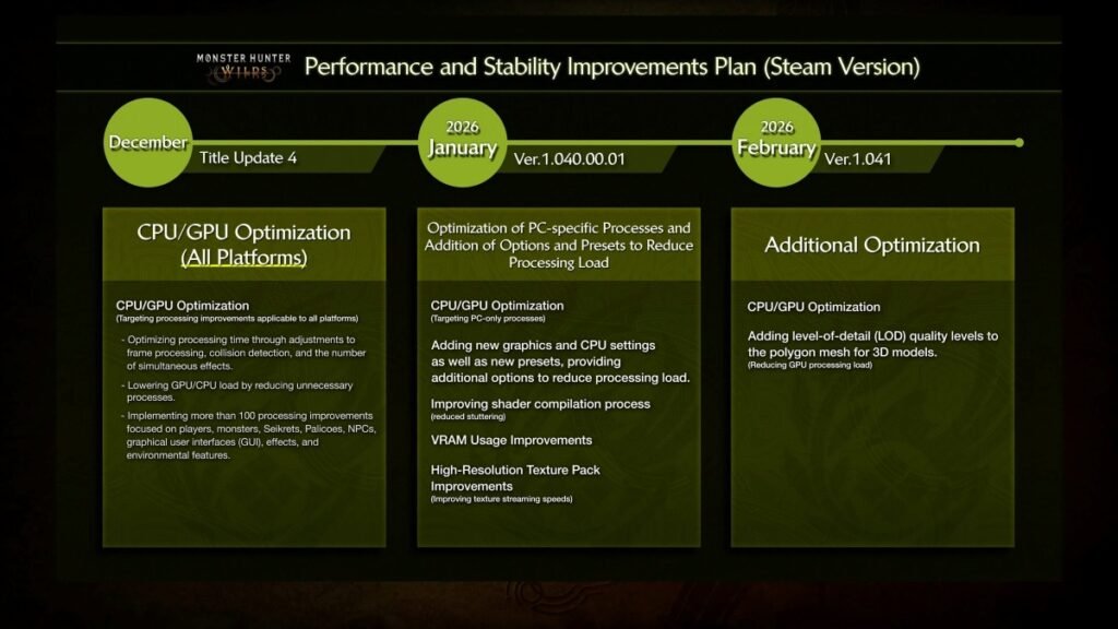 Mais de dez meses após o lançamento de Monster Hunter Wilds, a Capcom promete finalmente lidar com os problemas de otimização do título. Ela vai fazer isso em três grandes etapas, sendo que a primeira delas começa no dia 16 de dezembro, data de estreia do Title Update 4 do título. Segundo a companhia japonesa, […]
