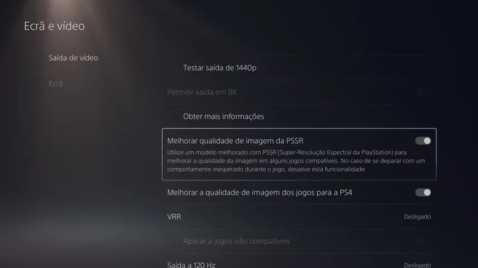3. Dentro de Saída de vídeo, role até encontrar o item Melhorar a qualidade de imagem PSSR (em inglês: Enhance PSSR Image Quality).
