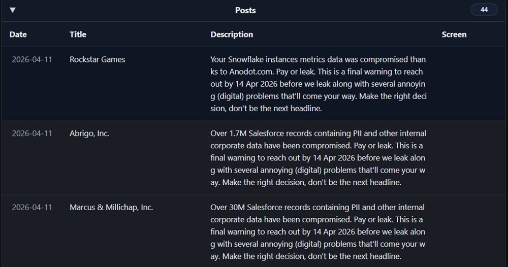 Os hackers se identificam como ShinyHunters e listam diversas empresas que teriam sido hackeadas recentemente e eles tentam obter pagamentos para não vazar os dados. A Rockstar é a maior delas, e o grupo afirma ter conseguido o hack pelo ambiente Snowflake.